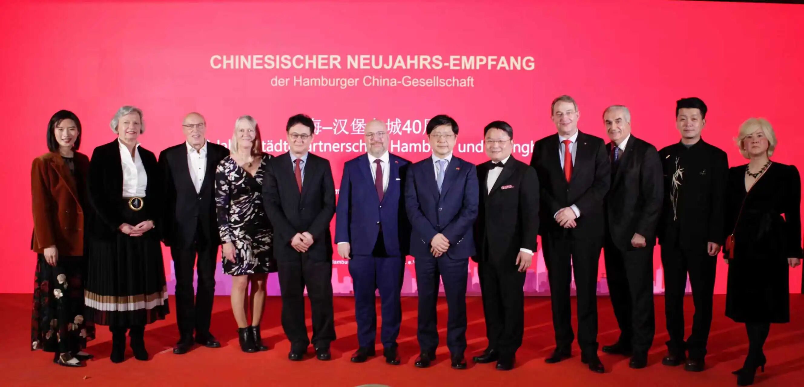 当晚,在现场嘉宾的共同见证下,作为中国上海及德国汉堡友好城市关系象征的汉堡豫园点亮“中国红”。